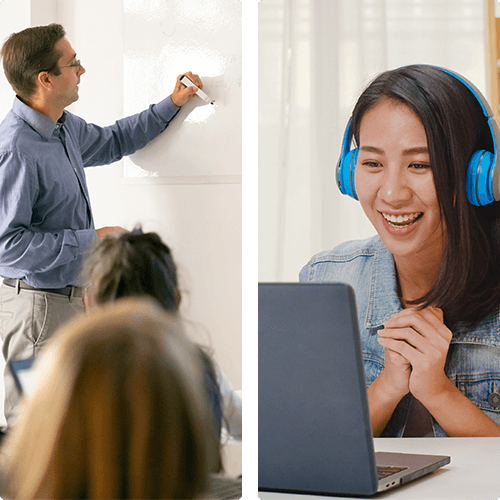 Ya sea que elijas clases presenciales, virtuales en vivo o una combinación de ambas, en